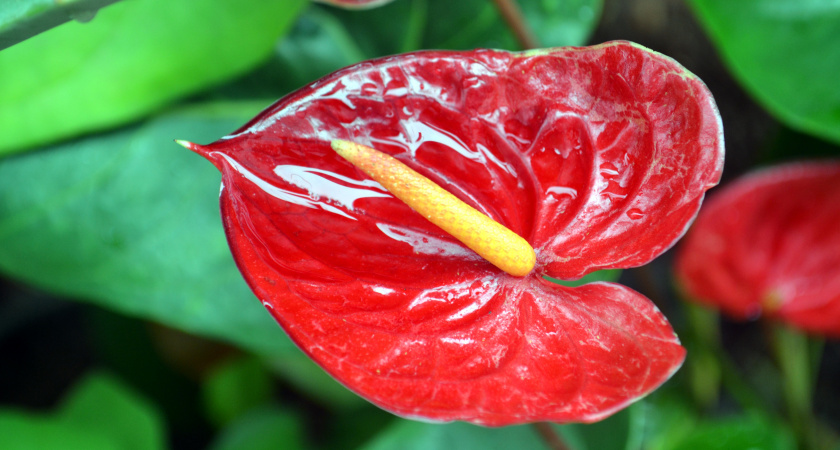 Обматываем стволик пакетом — и антуриум начинает цвести: выпускает по 10 "алых парусов" в день