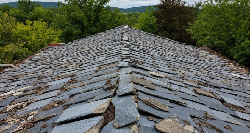 Очистите шифер от загрязнений и мха металлической щеткой.
